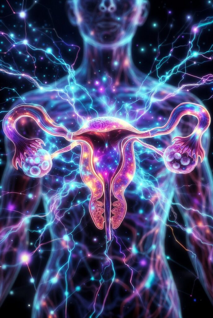 O ovário não é apenas um órgão endócrino; é um órgão bioelétrico. Dentro de cada folículo, as células da granulosa que envolvem o oócito são estruturas dependentes de voltagem, cujo potencial de membrana governa diretamente se um folículo amadurece e se o ovário emite um sinal hormonal coerente. As células da granulosa são antenas. Elas captam sinais eletromagnéticos, traduzem esses sinais em linguagem hormonal e informam a todos os outros órgãos do corpo se o campo de criação está ativo ou inativo.